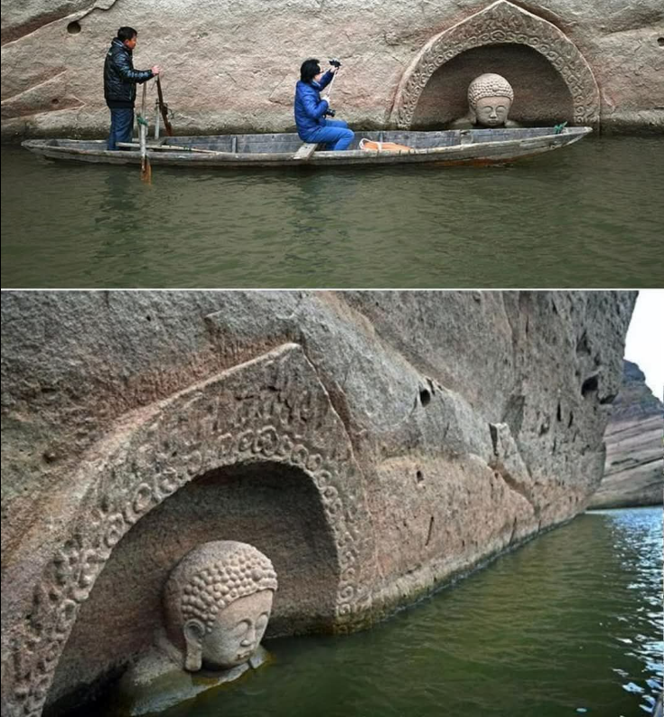 في عام 2017، كشفت مستويات المياه المنخفضة عن تمثال بوذا منحوت في جرف صخري على ضفاف النهر في فوشو، الصين. تم اكتشاف التمثال من قبل أحد السكان المحليين بعد أن انخفض منسوب المياه بأكثر من 10 أمتار أثناء العمل على بوابة لتوليد الطاقة الكهرومائية.