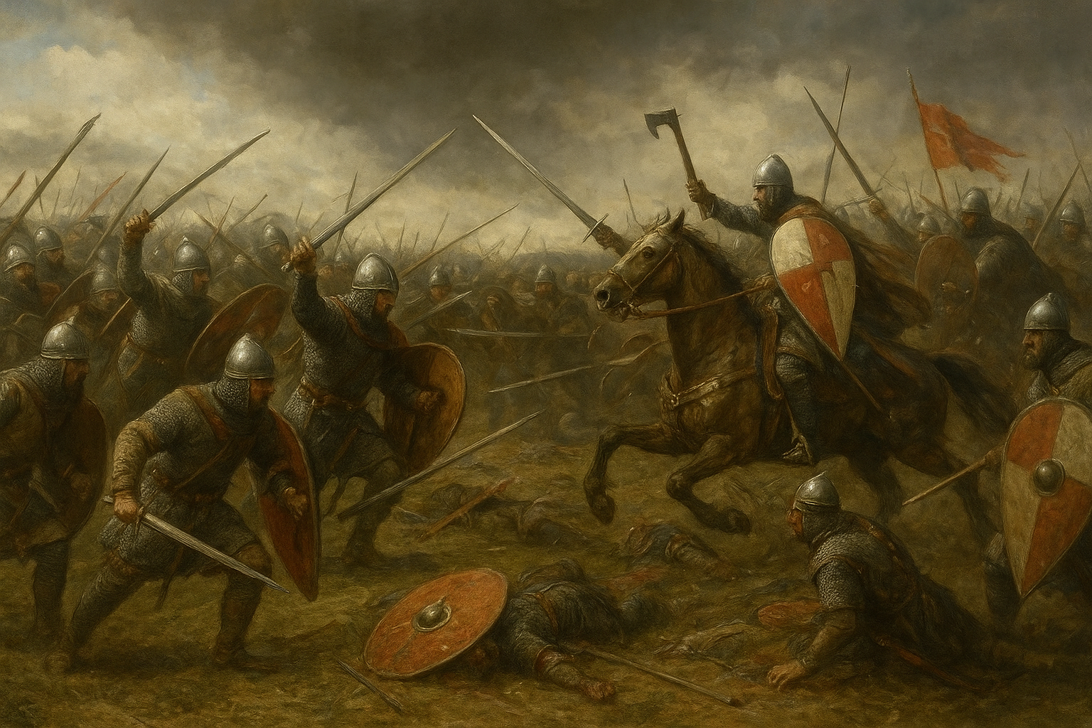 في عام 1066م، شهدت إنجلترا واحدة من أعظم معاركها الفاصلة في التاريخ، معركة هيستينغز، التي غيّرت مسار البلاد سياسيًا واجتماعيًا وثقافيًا. اندلعت المعركة بعد وفاة الملك إدوارد المعترف دون وريث شرعي، ما أشعل صراعًا داخليًا على العرش بين هارولد جودوينسون وخصومه، في حين استغل ويليام دوق النورماندي الفوضى ليعلن أحقيته بالحكم بدعم من البابوية.