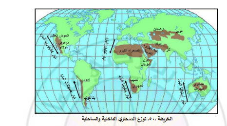إقليم الصحراء : يمثل إقليم الصحراء المناطق التي تتسم بالفقر الحيوي سواء على المستوى النباتي أو الحيواني نتيجة لسيطرة الظروف البيئية تحول دون اتاحة الفرصة لوجود الأحياء بصورة غنية كثافة وتنوعاً فالصحراء في الأصل كلمة حيوية (نباتية) بالدرجة الأولى وهي تعني الفقر الحيوي ويعتقد الكثيرون خطأ أن الصحاري هي مناطق فقراء جرداء تنعدم فيها الحياة بل هي في الحقيقة نظام بيئي يقوم بدعم طيف من أشكال الحياة في منظومة فريدة من التنوع الحيوي وتنقسم الصحاري وفقاً لمواقعها إلى نوعين هما: الصحاري الداخلية والساحلية.