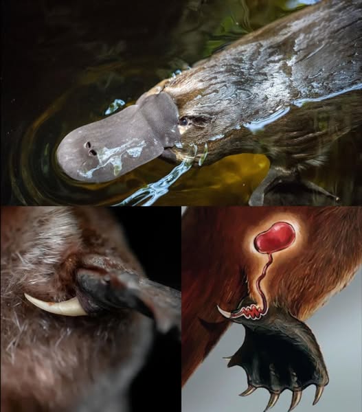 Both hind limbs of the male bear hollow, pointed, poison spurs mounted on the insides of the ankles, just above the heels. There are venom glands, one in each thigh, called the "crural glands" because they are controlled by the crural nerves, which are major motor nerves of the hindlimbs. The glands secrete venom that is passed through ducts to the sharp spurs, which the platypus can erect like jacknife blades and stab into other animals.