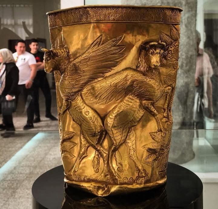 كأس مارليك، الذي يعود تاريخه إلى حوالي 1400 قبل الميلاد، يتميز بأربعة ثيران مجنحة أسطورية في وضعيات حيوية وديناميكية، مع امتداد أجنحتها للخارج كما لو أنها على وشك الطيران. تم اكتشافها في قرية مارليك في شمال إيران، وتقع في المتحف الوطني الإيراني.