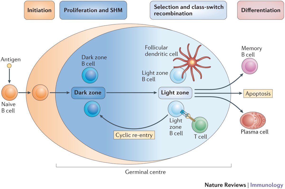| تضمن استجابة مناعية أسرع وأقوى عند التعرض المتكرر لنفس المستضد ويتم ذلك بتعاون منظم مع Tfh cells وFDCs. | أعجبني |