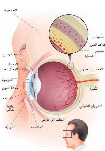 يُظهر هذا الرسم التوضيحي الملامح الاساسية للعين .