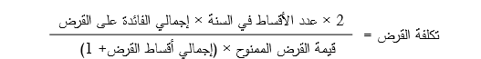 ويمكن في هذا الصدد إﺳﺗﺧدام طريـﻘـﺔ اﻟﺗﺟرﺑـﺔ واﻟﺧطـﺄ ﻟﻠوﺻـول إﻟـﻰ اﻟﺗﻛﻠﻔـﺔ اﻟﺗـﻲ ﺗﺟﻌـل اﻟﻣﻌﺎدﻟـﺔ ﺻـﺣيـﺣﺔ ، ﻟﻛـن ﻧظـراً ﻷن ﻫـذﻩ اﻟطريـﻘﺔ طويـﻠﺔ ﻓيـﻣﻛن إﺳﺗﺧدام اﻟﻣﻌﺎدﻟﺔ اﻟﺗﻘريـﺑيـﺔ اﻟﺗﺎﻟيـﺔ ﻻﺣﺗﺳﺎب ﺗﻛﻠﻔﺔ اﻟﻘرض.