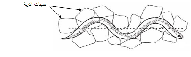 شكل يبين حركة الدفع التموجية في النيماتودا بين حبيبات التربة.