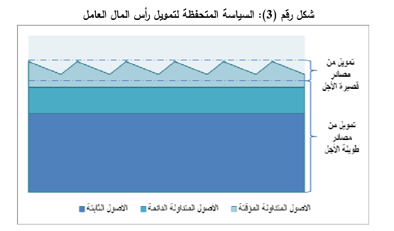ﺗﻘـــوم ﻫـــذﻩ اﻟﺳيـﺎﺳــﺔ ﻋﻠــﻰ ﺗﻣويـــل اﻷﺻــول اﻟﺛﺎﺑﺗـة واﻷﺻــول اﻟﻣﺗداوﻟـﺔ اﻟداﺋﻣـﺔ وﺟـــزء ﻣـــن اﻷﺻـول اﻟﻣﺗداوﻟـﺔ اﻟﻣؤﻗﺗـﺔ ﻋـــن طريــق ﻣﺻـﺎدر اﻟﺗﻣويــل طويـﻠـــﺔ اﻷﺟــل ﻣﺛــل اﻷﺳــﻬم واﻟﺳــﻧدات ، ﺑيـﻧﻣــﺎ يـــﺗم ﺗﻣويل ﺟــزء ﺑﺳــيـط ﻣــن اﻷﺻــول اﻟﻣﺗداوﻟــﺔ اﻟﻣؤﻗﺗــﺔ ﻋــن طريـــق ﻣﺻﺎدر ﺗﻣويـل ﻗﺻيـرة اﻷﺟل ﻛﻣﺎ ﻫو ﻣوﺿﺢ ﻓﻲ اﻟﺷﻛل رﻗم 3 .