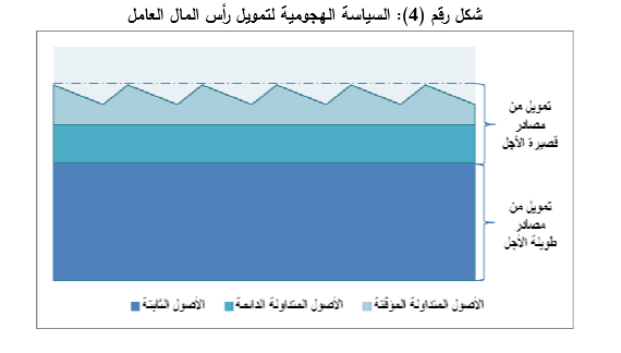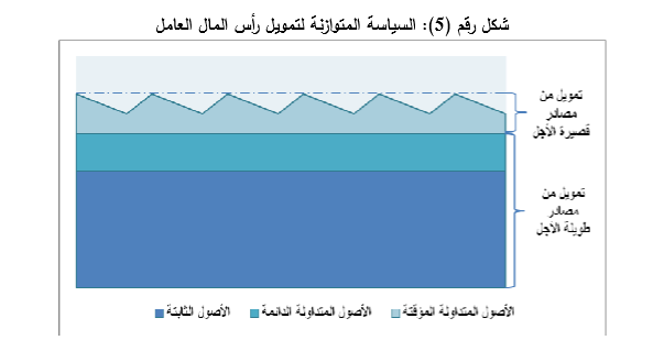 ﺗﺗوﺳط ﻫذﻩ اﻟﺳيـﺎﺳﺔ ﺑيـن اﻟﺳيـﺎﺳـﺔ اﻟﻣﺗﺣﻔظـﺔ وﺑـيـن اﻟﺳيـﺎﺳـﺔ الهجومية ﺣيـــث أﻧﻬــﺎ ﺗﻘــوم ﻋﻠــﻰ ﺗﻣويـــل اﻷﺻــول اﻟﺛﺎﺑﺗــﺔ واﻷﺻــول اﻟﻣﺗداوﻟــﺔ اﻟداﺋﻣــﺔ ﻋــن طريـــق ﻣﺻــﺎدر اﻟﺗﻣويـــل طويـــل اﻷﺟــل ، ﺑيـﻧﻣــﺎ ﺗﻘــوم ﺑﺗﻣويـــل اﻷﺻــول اﻟﻣﺗداوﻟــﺔ اﻟﻣؤﻗﺗــﺔ ﻣــن ﺧـﻼل ﻣﺻﺎدر اﻟﺗﻣويــل ﻗﺻـيـر اﻷﺟل ﻛﻣﺎ ﻫو ﻣوﺿﺢ ﻓﻲ اﻟﺷﻛل رﻗم5 .