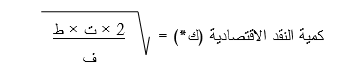 حيث ان (ت) هي تكلفة المعاملة الواحدة ، و(ط) هي طلب الشركة الكلي على النقد ، و(ف) هي تكلفة الفرصة للنقد المحتفظ به .