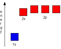 Notice that the 2s orbital has a slightly lower energy than the 2p orbitals. That means that the 2s orbital will fill with electrons before the 2p orbitals. All the 2p orbitals have exactly the same energy.