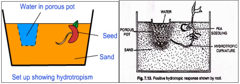 الحركة والنمو استجابة لوجود الماء .