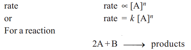 The exact relation between concentration and rate is determined by measuring the reaction rate with different initial reactant concentrations. By a study of numerous reactions it is shown that : the rate of a reaction is directly proportional to the reactant concentrations, each concentration being raised to some power.