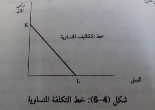 ان اختيار الكميات المُثلى من المدخلين (العمل ورأس المال) يحتم على المنشأة ان تأخذ في الحساب الانتاجية المادية وأسعارها ، فأما منحنيات الناتج المتساوي فإنها تمثل الانتاجية ، أما أسعار المدخلات فتُمثل بخطوط التكلفة المتساوية ( cost Line ـIso ) .