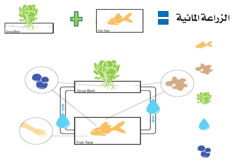 ٤- إعادة تدوير المياه لتوفير الأوكسجين لجذور النباتات والسمك.
