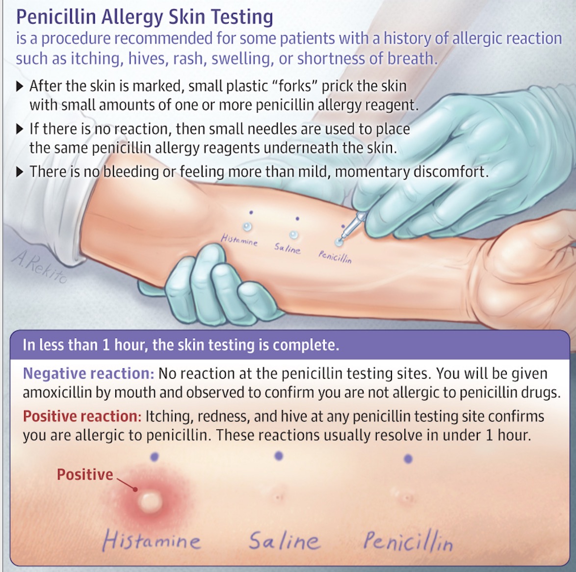 حساسية للبنيسلين يمكن ان تؤدي الى الصدمة في بعض الأشخاص وعلاقتها بالحساسية الغذائية هي علاقة غير مباشرة ، فالأغذية الحاوية على البنسلين بتراكيز قليلة تكون السبب في الحساسية ، وفي هذه الحالة تعد من المواد المستترة ، ويجد البنسلين طريقة للغذاء عن طريق حقن الحيوانات للعلاج وتسربه الى الحليب او لحوم الحيوانات . وتظهر الحساسية للمضادات المشتقة من البنسلين ، لذلك وجب التوخي والحذر عند استعمال مثل هذه الادوية .