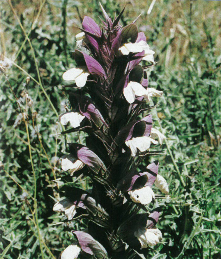 This plant known as the “Syrian acanthus" has white or dark purple flowers in a dense spike to 60 cm. It usually grows in dry, sunny, and well drained sites.