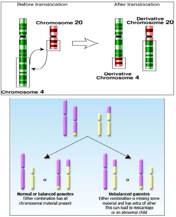 تبادل للمعلومات الوراثية بين الكروموسومات غير المتماثلة ، وتوجد الحالة في حوالي 1 لكل 625 من المواليد في الانسان وعادة تكون هذه التبادلات غير مؤذية ويمكن الكشف عنها بالفحوص قبل الولادة