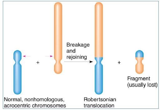 احد انواع الترتيبات الحاصلة للكروموسومات والذي يكون من نوع الترتيب غير المتوازن كما موضح في الاتي :