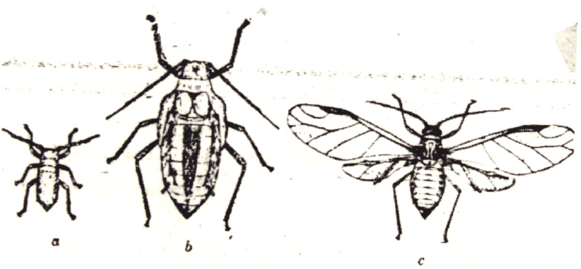 ففي بداية الربيع يفقس البيض الذي مر عليه فصل الشتاء وهو على الشجرة. فالحوريات الناتجة تنسلخ عدة مرات ويتكون عدة اجيال عذرية ومن ثم تتكون الأفراد الجنسية التي تهاجر إلى الحشائش والادغال وتضع البيض ويفقس ويتكون جيل جنسي جديد وترجع الى الاشجار وتضع البيض عليها مرة اخرى.