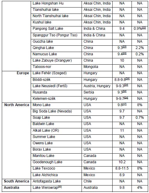 يوجد فيها تنوع ميكروبي كبير ومنها الاحياء المحبة للقاعدية والاخرى المحبة للملوحة كما موضح في الجدول الاتي :