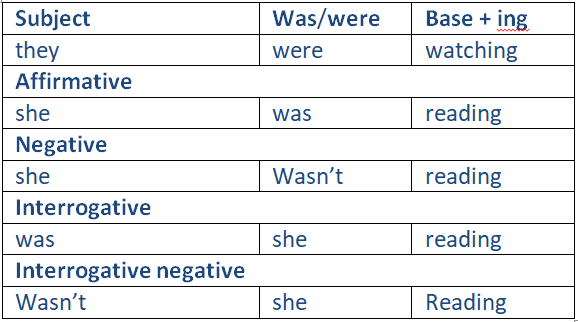 The past continuous of any verb is composed of two parts : the past tense of the verb "to be" (was/were), and the base of the main verb +ing.