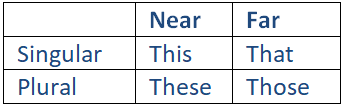 Use this table to easily reference which demonstrative adjectives to use in different contexts:
