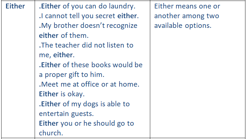 Each / every / either / neither / any / one