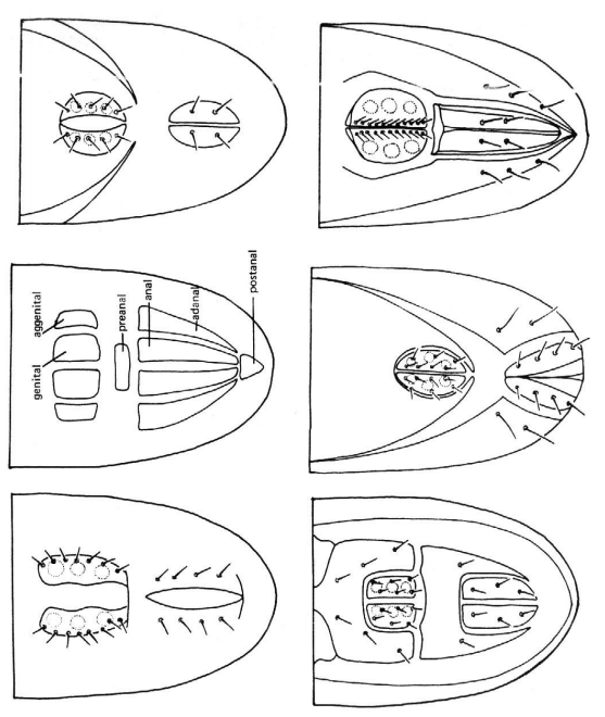 الشكل (6) الصفائح البطنية وتوزيع الشعيرات في الاكاروسات.