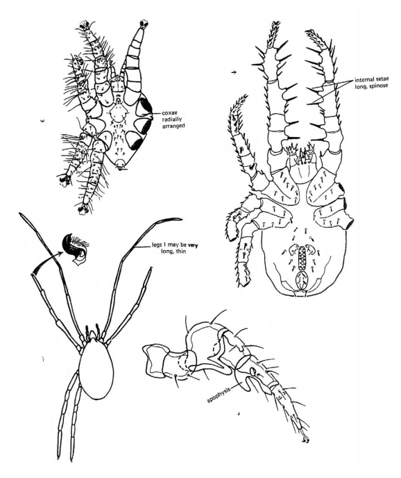 5- في عائلة Ewingidae يتحور الزوج الأخير من الأرجل بهيئة عضو لمسك الأنثى أثناء عملية السفاد.