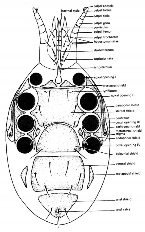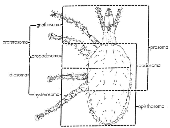 في عام 1940 قسم الباحث Vitzthum جسم الاكاروس إلى المناطق التالية: