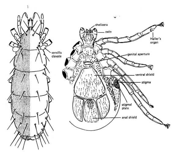 الشكل (1) مناطق جسم الأكاروس عن (Krantz ، 1978)