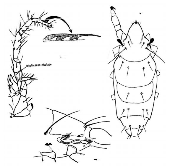 4- عدم وجود مخالب على الأرجل الأخيرة كما في عائلةScutacaridae .