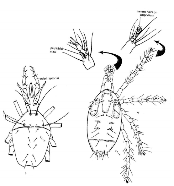 أ- الملمس بسيط لا يحمل أي مخالب على الساق كما في عائلة Tydeidae.