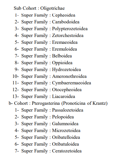 مما سبق يتبين أن Krantz قسم تحت صف الاكاروسات إلى رتبتين فقط هما: