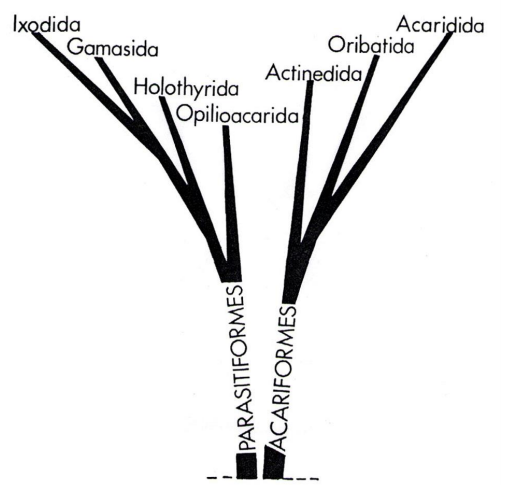 وعلى أساس هذا التقسيم أصبحت الأكاروسات تحت صف وتضم ثلاث رتب هي: