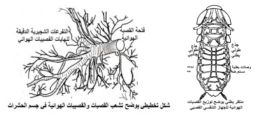 شكل (1): يوضح الترتيب العام للقصبات داخل جسم الحشرات.