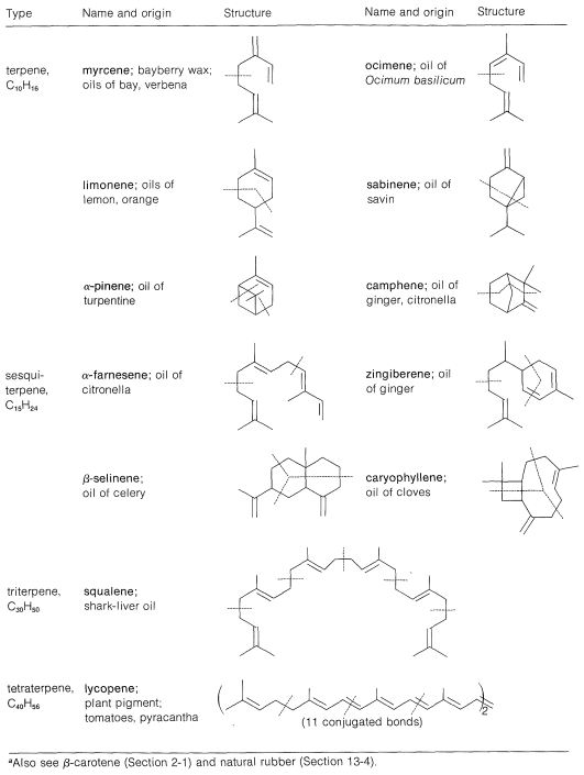 Table 30-1: Some Isoprenoid Hydrocarbonsaa