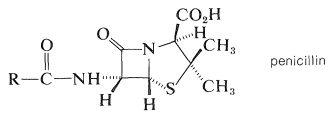 The structure is unusual in that it has a four-membered cyclic amide ring (β-lactam). It was the first example to be discovered of a natural product with this ring structure.