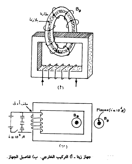 في هذه التجربة يمكن ضغط التفريغ (البلازما) الحلقي عن طريق المجال المغناطيسي الناتج عن تيار حلقي. يبين الشكل (2) جهاز زيتا. حيث