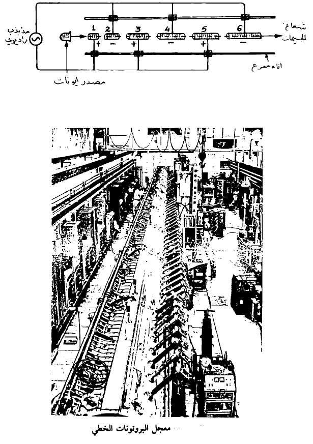 يبين الشكل (1 .ب) صورة للمعجل الخطي للبروتونات في بروكهافن.