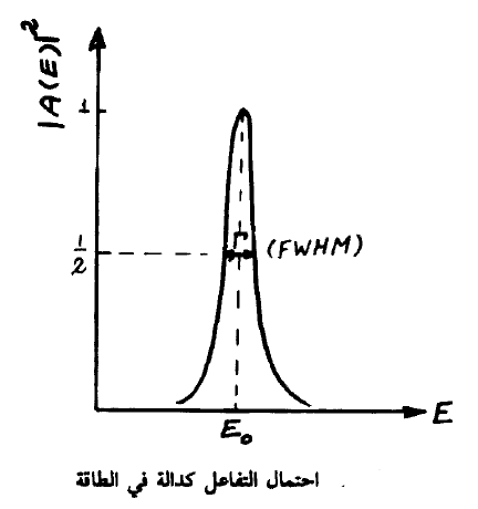 تعبر 2| (A(E| عن احتمال التفاعل. ويبين الشكل (1) احتمال التفاعل كدالة في الطاقة (E). ونبين في الشكل سمك المنحنى (r) أو ما يعرف بالاختصار (UM) أو Full Width - at - Half Maximum .
