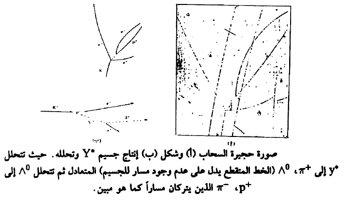 يبين الشكل (2) هذه التفاعلات والتحللات. تبين الحسابات الخاصة بالطاقة والزخم أن كتلة جسيم *Y تساوي 385. ج. أ. ف. كما ذكرنا سابقاً، ومن شكل التوزيع الكتلي نجد أنه لا توجد قمة حادة ومن ثم فإن الخطأ في هذه القيمة يبلغ 60 م.أ.ف. وهذا الخطأ يقابل عمر النصف لهذا الجسيم الذي يساوي 23-10 ثانية كما هو متوقع.
