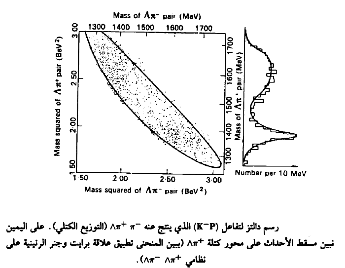 عند دراسة التفاعل الأول (1) ثم الاستعانة بالحاسب الآلي لتحليل طاقة وزخم البايونات +π-, π ونتج شكل يسمى برسم دالتز (Dalitz Plot) الذي نبينه في الشكل (1) وذلك كما يبدو في حجيرة فقاعة. فمن بين