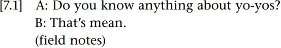 On the face of it, Speaker A’s utterance is an innocent enquiry about Speaker B’s state of knowledge. However, the prosody triggered a different interpretation. Speaker A heavily stressed and elongated the beginning of anything, coupled with marked falling intonation at that point (we might represent this as: “do you know ANYthing about /yo-yos?”). It signals to B that A’s question is not straightforward or innocent. It triggers the recovery of implicatures that Speaker A is not asking a question but expressing both a belief that Speaker B knows nothing about yo-yos (the prosodic prominence of anything implying a contrast with nothing), and an attitude towards that belief, namely, incredulity that this is the case − something which itself implies that Speaker B is deficient in some way. Without the prosody, there is no clear evidence of the interpersonal orientation of Speaker A, whether positive, negative or somewhere in between. Yet, despite the importance of prosody in communication, the vast bulk of research on politeness or impoliteness pays woefully little attention to the role of prosody. The single exception of note is the work of Arndt and Janney (e.g. 1987), whose notion of politeness involves emotional support conveyed multi-modally through verbal, vocal and kinesic cues (for prosody and impoliteness, see Culpeper 2011b).