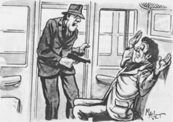 He was the only passenger in his compartment when another man burst in carrying a gun and said to him, 'Your money, or your life!