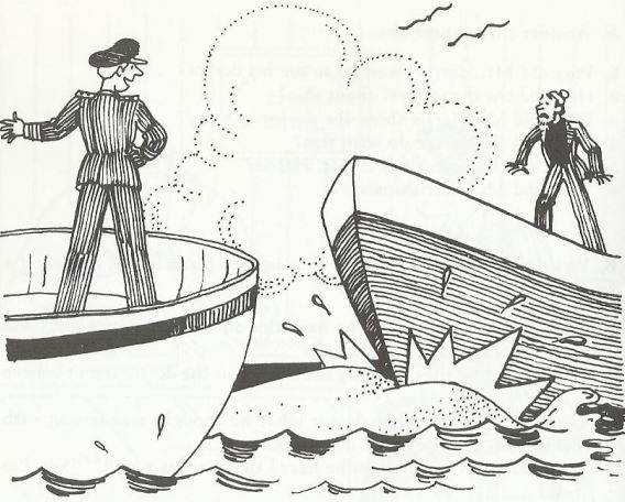 Fred had just become the captain of a small ship which carried things from one port to another along the coast. One day he had to take the ship up a river into a small port. He knew that the river had plenty of channels, and that some of them were very shallow and dangerous, so he decided to wait until he saw a local boat going up the river and then follow it. After half an hour he saw a boat start to go up the river, so he began to follow it. He followed it through various channels until both of the boats hit sand under the water and stopped.