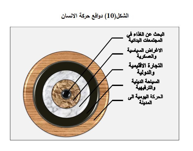 اقتصر التبادل التجاري على احتياج المترفين إلى بعض المعادن والأحجار النادرة، وبعض منتجات الأواني والمنسوجات الفاخرة في أقاليم أخرى، فضلاً عن بعض المنتجات الضرورية من خامات بعيدة كالحديد والنحاس والأخشاب الجيدة والبخور والعطور، وكانت وسائط النقل محدودة السعة بالرغم من تعدد أشكالها من قوافل الحمير أو البغال أو الخيول أو الإبل أو الإنسان إلى عربات الجر والزحافات إلى المراكب الصغيرة والسفن النهرية والبحرية الصغيرة، خلاصة القول أن التبادل التجاري في معظم فترات التاريخ كان محدود الحجم وينطبق عليه المثل الشائع " ما خف حمله وغلا ثمنه" ويبين الشكل (10) دوافع حركة الانسان، وقد تغيرت صورة تجارة العصر الصناعي بعد الصناعة والتنوع الكبير في كل أشكال الإنتاج من الضروريات والكماليات، وكذلك انقسام العالم إلى متقدم صناعي ومتخلف أو نام ينتج الخامات والموارد الأولية اللازمة لصناعة بصفة أساسية, وأصبحت السفن المتجهة إلى دول الشمال الصناعية تحمل خامات زراعية ومعدنية، والسفن المتجهة إلى الدول المدارية والجنوبية تحمل سلعاً مصنعة، فضلا عن بعض الأغذية الأساسية كالقمح أو الذرة ومنتجات الوقود والطاقة. بناء على هذا زادت حمولة وسائط النقل زيادة هائلة وتنوعت نوعيتها بين قطارات وشاحنات عملاقة والسفن والطائرات خلاصة القول أن النقل والتجارة هما في كل الأوقات عبارة عن وحدة وظيفية واحدة ذات شقين وجهان لعملة واحدة.