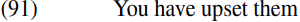 The resulting structure is then merged with a null declarative complementizer to derive the CP structure associated with (91) You have upset them. (On accusative case assignment in double-object structures like give someone something, see Goodall 1999.)