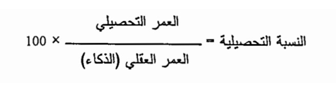 لقد تبين من الدراسات التي أجريت في مجال التحصيل المدرسي أن الأطفال الموهوبين يتفوقون على الأطفال العاديين بشكل عام إذ أنهم الموهوبون، ينالون علامات أفضل في الاختبارات التحصيلية المدرسية. وبما أن التحصيل المدرسي يتناسب طردا مع العمرين العقلي والزمني للطفل، فلا عجب أن ينظر المعلمون إلى هذين العمرين بعين الاعتبار حين يقارنون العمر الزمني مع التحصيل المدرسي. بكلمة أخرى هل يتناسب المستوى الدراسي المعين مع عمر الأطفال الزمني؟، وهل يكفي هذا المقياس لأن يعتبر محكاً مهماً لمعرفة الأطفال الموهوبين؟ فإذا افترضنا طفلاً موهوباً في الصف الخامس الابتدائي نسبة ذكائه هي 140، وعمره الزمني أحد عشر عاماً فهل يمكن لهذا الطفل أن يؤدي بنجاح نفس الاختبار الموضوع لتلامذة صفه في السنة الخامسة الابتدائية مثلا؟ لقد قام أحد الباحثين ـ وقد أيده بعضهم ـ بإيجاد وسيلة لتحديد مقدار التحصيل الذي يمكننا توقعه من الأطفال الأذكياء عبر هذه المعادلة الحسابية وهي(1):