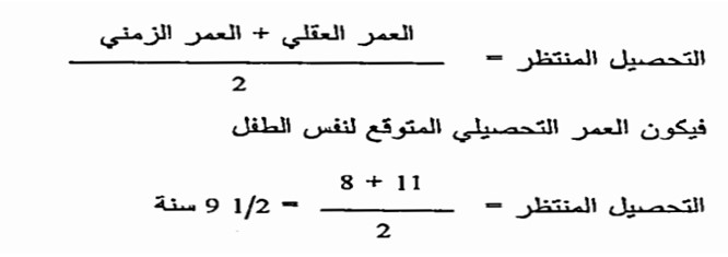 فإذا كان عمر الطفل ثماني سنوات واتضح من اختبار الذكاء أن ذكاءه يعادل ذكاء طفل عمره 11 سنة، فينبغي أن يحصل في اختبار القراءة على عمر تحصيلي قدره إحدى عشرة سنة حتى تصل نسبته التحصيلية إلى 100. إلا أننا لا نجد في هذه الطريقة جواباً واضحاً يمكننا الركون إليه في هذا الخصوص. ومع هذا فلا زال البعض يعتمد عليها في كثير من المدارس نظراً لما تعطيه هذه الطريقة من أهمية عملية عملانية كوسيلة للحصول على نتيجة مرضية.
