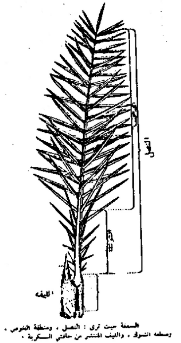 شكل يبين اجزاء سعف نخلة التمر